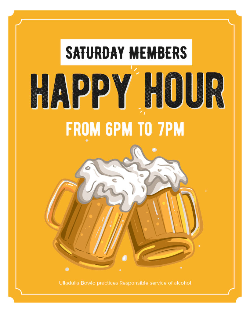 Unwind and celebrate the weekend at Ulladulla Bowlo’s Saturday Members’ Happy Hour! From 6pm to 7pm, enjoy special drink prices and a lively atmosphere perfect for catching up with friends after a long week. It’s the best way to relax, socialise, and start your Saturday night right — responsibly served and full of good cheer.